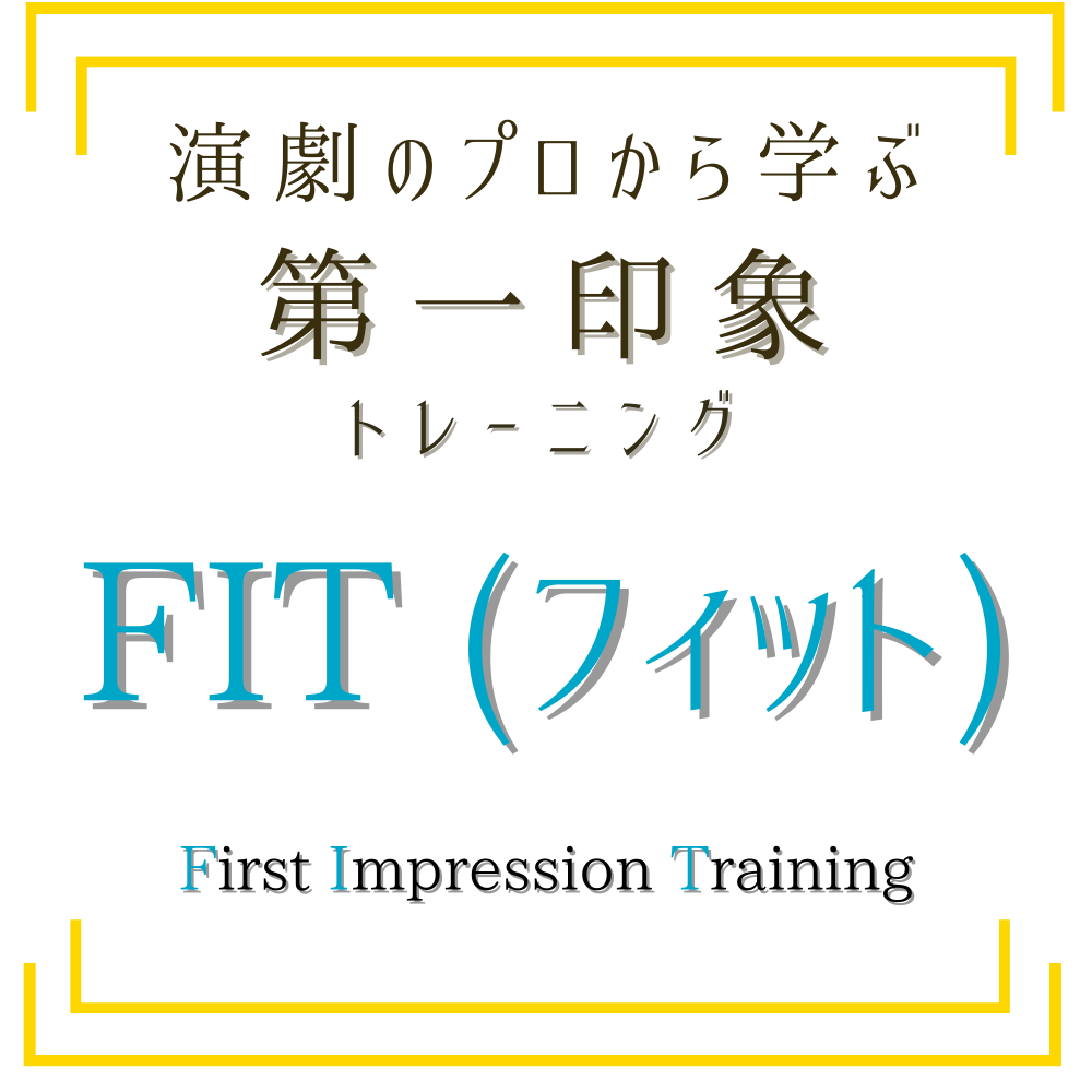 この【第一印象トレーニング:FIT(フィット)】 は 演劇ツールを利用して"FIT"という言葉が示す通り「無理なく健やかな」「あなたにぴったり合う」、つまり【あなたにしかない魅力】で溢れる第一印象の構築方法をお伝えします。